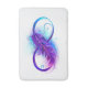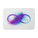 Infinity symbol with a beautiful feather painted in purple and blue bright colours on white background.