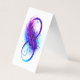 Infinity symbol with a beautiful feather painted in purple and blue bright colours on white background.
