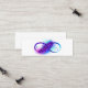 Infinity symbol with a beautiful feather painted in purple and blue bright colours on white background.