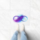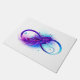 Infinity symbol with a beautiful feather painted in purple and blue bright colours on white background.