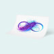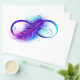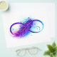Infinity symbol with a beautiful feather painted in purple and blue bright colours on white background.
