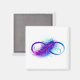 Infinity symbol with a beautiful feather painted in purple and blue bright colours on white background.