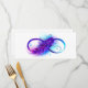 Infinity symbol with a beautiful feather painted in purple and blue bright colours on white background.