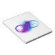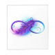 Infinity symbol with a beautiful feather painted in purple and blue bright colours on white background.