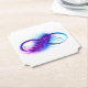 Infinity symbol with a beautiful feather painted in purple and blue bright colours on white background.