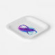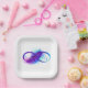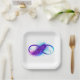 Infinity symbol with a beautiful feather painted in purple and blue bright colours on white background.