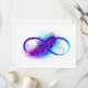 Infinity symbol with a beautiful feather painted in purple and blue bright colours on white background.
