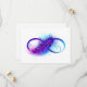 Infinity symbol with a beautiful feather painted in purple and blue bright colours on white background.