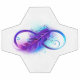 Infinity symbol with a beautiful feather painted in purple and blue bright colors on white background.