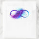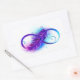 Infinity symbol with a beautiful feather painted in purple and blue bright colors on white background.