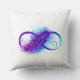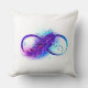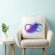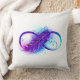 Infinity symbol with a beautiful feather painted in purple and blue bright colours on white background.