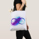 Infinity symbol with a beautiful feather painted in purple and blue bright colours on white background.