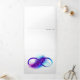 Infinity symbol with a beautiful feather painted in purple and blue bright colors on white background.