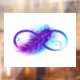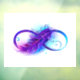 Infinity symbol with a beautiful feather painted in purple and blue bright colours on white background.