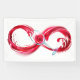 Infinity symbol of continuous stream of red wine pouring into glass wine glass on white background.