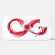 Infinity symbol of continuous stream of red wine pouring into glass wine glass on white background.
