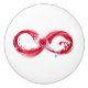 Infinity symbol of continuous stream of red wine pouring into glass wine glass on white background.