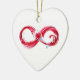 Infinity symbol of continuous stream of red wine pouring into glass wine glass on white background.