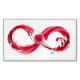 Infinity symbol of continuous stream of red wine pouring into glass wine glass on white background.