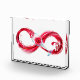 Infinity symbol of continuous stream of red wine pouring into glass wine glass on white background.
