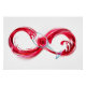 Infinity symbol of continuous stream of red wine pouring into glass wine glass on white background.