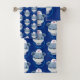 Serviette sertie avec une jolie illustration d'un ours bleu portant un casquette d'infirmières avec un petit coeur dessus. Portant également un masque de protection et a un stéthescope bleu aussi.