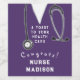 Cadeau de remise de diplômes d'infirmière étiquettes et décoration de la grande fête de l'école de soins infirmiers avec gommages d'hôpital violet. Modifier le texte pour ajouter le nom de l'infirmière.