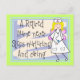 La commande est arrivée très rapidement et le produit correspond totalement à mes attentes. Cette carte postale est vraiment mignonne et je l'ai offerte à une amie pour les Fêtes. Image de la meilleure qualité. Bon format de carte postale et carton très résistant.