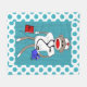 Infirmière Sock Monkey Fleece Blanket. sock singe portant infirmière casquette et stéthoscope. L'Arrière - plan est bleu avec une bordure en pois bleu et blanc. .