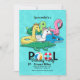 A summer-theme invitation perfect for a pool party for the "young set". It features pool toys in the form of a giraffe, unicorn, turtle, flamingo, shark and alligator. (<a href='http://www.freepik.com/free-vector/inflatable-animal-pool-toys_894996.htm'>Designed by Freepik</a>). <br/><br/>The card is easy to customize with your wording, font, font colour and choice of six paper types.<br/><br/>Not exactly what you're looking for? All our products can be custom designed to meet your needs at no extra charge.<br/><br/>Simply contact us at askcottonlamb@gmail.com<br/><br/>Coordinating products available: