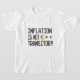 Awesome bitcoin design featuring a bitcoin monster eating dollars and euros and the quote "Inflation is not transitory”.