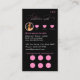 A beautifully designed black and pink loyalty discount business card that includes your own photos as well as your name, title, QR code and social media handle. Perfect for small businesses. Simply customize and make it your own!