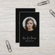 Minimalist modern trendy social media influencer custom profile photo black business card with your own automatically generated QR CODE and a chic contemporary white handwritten signature script. ++++++++++++ Easy to personalize with your code, details, and photo.