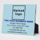 Plaque de plaque de table rectangle au format paysage avec chevalet que vous pouvez customiser pour mettre votre nom d'entreprise. Customisez-le et utilisez-le comme matériel marketing pour faire de la publicité à votre entreprise ou pour promouvoir votre marque auprès de vos clients ou clients. Les dessins sont des textes bleu foncé et noir sur bleu clair arrière - plan et sur format paysage rectangle forme. Pour customiser cette plaque, téléchargez votre logo d'entreprise, tapez votre nom d'entreprise ou d'entreprise, votre adresse, votre numéro de téléphone, votre courriel et votre site Web ou votre page de médias sociaux. Veuillez vérifier l'apparence après avoir téléchargé le logo et tapé des textes. Si l'apparence vous plaît, vous pouvez passer votre commande maintenant. Si vous avez besoin de redimensionner et déplacer le logo et les textes pour s'insérer sur cette plaque ou sur d'autres tailles que vous choisirez, veuillez modifier l'outil de conception. Vous pouvez également effectuer d'autres modifications en fonction de vos préférences dans l'outil de conception, comme changer la couleur arrière - plan, la couleur de police et le style de police. Plaque que que vous pouvez afficher sur votre bureau de réception pour sensibiliser la marque.