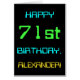 Ce design simple et amusant de carte de voeux d'anniversaire comporte un message comme "HAPPY 71st BANTHDAY, ALEXANDER!". Son look s'inspire du domaine de l'informatique numérique. Le nom à l'avant et le message à l'intérieur peuvent être customisés. Il pourrait être envoyé ou donné à quelqu'un qui célèbre son soixante-et-onzième anniversaire, et qui peut-être travaille (ou a travaillé avant la retraite) comme administrateur de système informatique, programmeur informatique, administrateur réseau, ingénieur électrique, développeur logiciel, ou qui aime utiliser des ordinateurs. [~Z0000100]