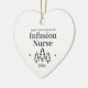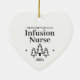 First Christmas as an infusion nurse heart ornament for a new job in nursing in the operating room. Elegant porcelain ceramic holiday ornaments in white with black lettering. Featuring Christmas trees and stars.
