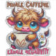 A funny and sarcastic design showcases a cute highland cow with big blue eyes, sitting contentedly in front of a vibrant daisy while holding a steaming cup of black coffee. The cow's soft brown fur adds to its charm. Bright, colorful text reads, "Inhale caffeine, exhale negativity." This delightful design is available on a variety of products, making perfect gifts for coffee enthusiasts.