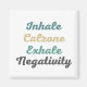 Bring some positive vibes to your fridge, whiteboard, or any other magnetic surface with these fun and inspiring "Inhale Calzone Exhale Negativity" magnets. Featuring a colourful design with a playful font, these magnets serve as a daily reminder to take a deep breath and let go of negativity. Use them to hold up notes, photos, or just as a decorative touch. Made with high-quality materials, these magnets are both durable and stylish, making them the perfect addition to your home or office. So why not add a little positivity to your day with these delightful "Inhale Calzone Exhale Negativity" magnets?