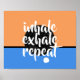 Motivational inhale exhale repeat quote poster in bold modern trendy blue and orange typography word art for wall art home or office decor Art copyright Ann Powell all rights reserved.