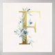Initial F Golden and Blue Floral Monogram Poster
