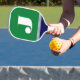 This monogrammed pickleball paddle is simple, modern, minimal but bold and colourful with its green and navy blue stripes and your first or last initial in white.
