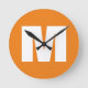 Initial Letter Monogram Modern Style Orange White Round Clock