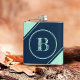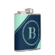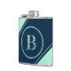 Initial Monogram Geometric Diagonal Blue Mint Hip Flask