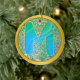 Initial Monogram M Christmas - Gold, Teal & Blue Ceramic Ornament