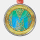 Initial Monogram M Christmas - Gold, Teal & Blue Metal Ornament