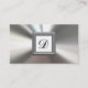 Professional, Promotional Silver Metallic Look Cards. A classy, cool, and unique platinum bent metal plain surface look design in silver stainless steel look is a bold, strong, modern business card. Silver artistic design metal plate is on the front and also on the back. Easily add your initial monogram, company name or your name, etc. on the front and any information on either or both sides. The perfect professional-looking card especially for industrial, construction and building occupations, and skilled trades, or retail and wholesale sales, such as the gold, silver, aluminum metals, or jewellery trades. A strong business card that stands out from the rest. This card can also be used for graduation, engagements, weddings, anniversary parties, etc. Shown is the letter D which can easily be changed.
