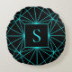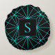Initial Monogram | Turquoise Geometric Design Round Pillow