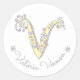 Pretty girls monogram name sticker ideal for embellishing books and to personalized girls items. Stickers reads V Victoria Vernon or you can personalize with your own name or surname starting in V. Decorative capital letter V with hearts and flowers art © Designed by Sarah Trett www.sarahtrett.com for www.mylittleeden.com