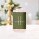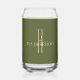 Popular can glass is an ideal gift for any occasion or treat yourself. This 16oz drinking glass resembles a classic beverage can design. Full army green wrap around the glass with khaki colour initial and antique white for the decorative font family name, on both sides. Easily change text once to make it yours using the Template provided. Made in the USA. See "About This Product" at side for more information. ===>Hand wash only.<===