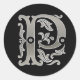 Initial P Round Sticker in silver